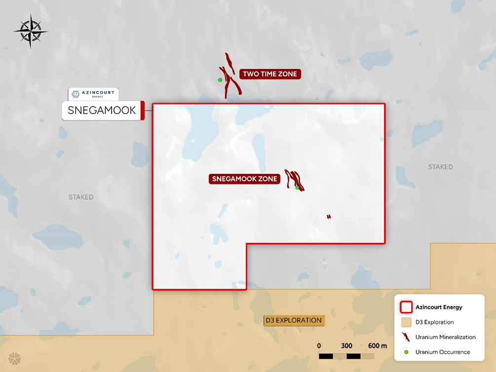 VANCOUVER, British Columbia, Nov. 13, 2024 (GLOBE NEWSWIRE) — AZINCOURT ENERGY CORP. (“Azincourt” or the “Company”) (TSX.V: AAZ, OTC: AZURF), is pleased to announce that it has begun historic data compilation on it’s recently acquired Snegamook uranium project, located in the Province of Newfoundland and Labrador.