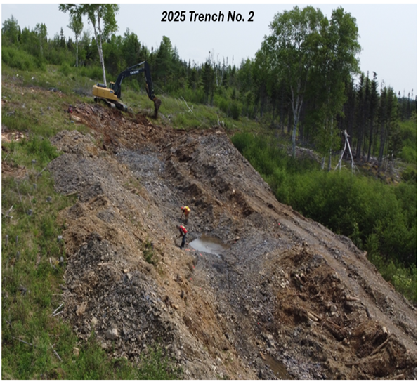 Trench No. 1 of the 2025 program was excavated between the two 2024 trenches. Trench No. 2 of 2025 program was excavated west – southwest of 2024 Trench No. 2. The third and fourth 2025 trenches were excavated approximately 200 meters and 160 meters southwest and south of the second 2025 trench in an area of gold soil anomalies (identified during Great Atlantic’s 2018 and 2020 exploration programs).