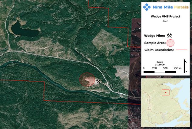 VANCOUVER, British Columbia, Aug. 02, 2023 (GLOBE NEWSWIRE) — NINE MILE METALS LTD. (CSE: NINE, OTCQB: VMSXF, FSE: KQ9) (the “Company” or “Nine Mile”) is pleased to announce the certified results for VMS mineralization collected from the Wedge mine site in the world-famous Bathurst Mining Camp, New Brunswick, Canada. Discovered in 1956, Cominco operated the mine between 1962 to 1968 producing 1.5 million tonnes of predominantly copper ore. Despite a long exploration and operating history, technical data regarding the mine was not required to be reported to the New Brunswick Department of Energy and Mines, including drill logs, assay certificates, production figures and underground mine plans.