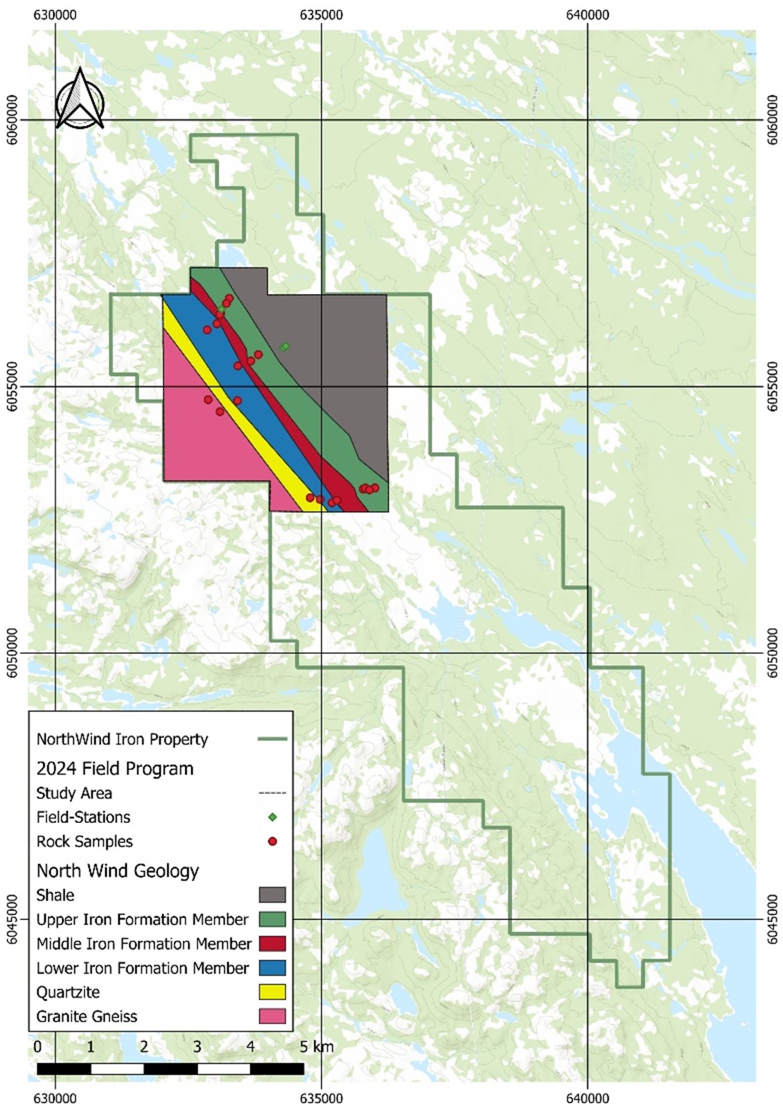 North Wind Iron Ore Project overview with 2024 samples and mapped Stratigraphic units